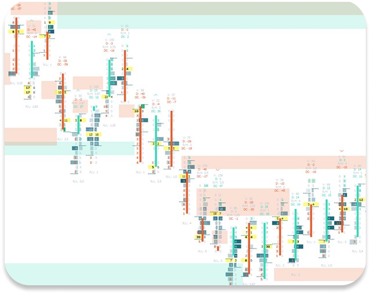 • Interpretación de la huella del mercado (footprint charts) y análisis del volumen.